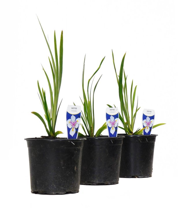 Dietes iridioides, also known as African iris or fortnight lily, is a slow-growing plant that can grow up to 1-1.5m in height and spread up to 1m wide. It produces long, slender leaves and white, yellow or blue flowers with six petals. This plant prefers well-draining soil, full sun to partial shade, and can tolerate a range of temperatures. It is relatively drought-tolerant and adaptable to different soil types. Deadheading spent flowers can encourage more flowering, and occasional trimming of the leaves can help keep it tidy. Dietes iridioides is a low-maintenance and versatile plant that can add beauty to any garden.