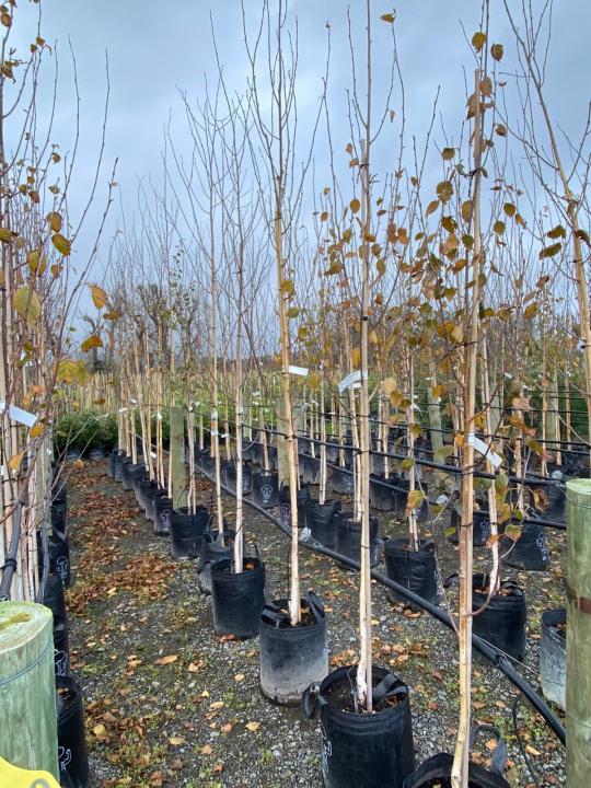 Thrives in full sun to partial shade and prefers moist, well-draining soil. Performs best in cooler climates and benefits from consistent moisture, particularly when establishing. Space 4–6 metres apart for mature canopy development.
