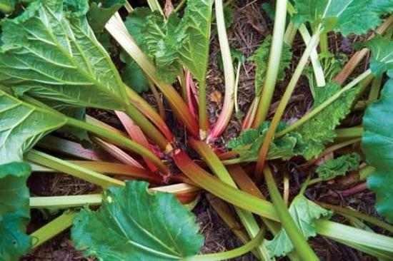 Tart and tasty! This is the best rhubarb for cooking. The stalks are green with a red blush. Harvest in spring. Position in full sun. Hardy. Deciduous.