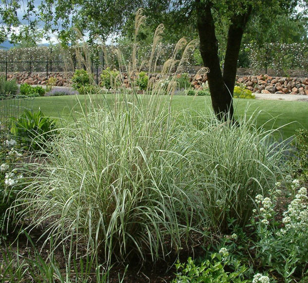 Great for those looking to add height, texture, and year-round interest or as a focal point in landscape designs such as a mixed border, as a screen, or as part of a grass garden. This grass is particularly effective when planted in groups, where its variegated leaves can truly stand out and create a stunning visual impact. Miscanthus sinensis Variegata thrives in full sun to partial shade and prefers well-drained soil. It is low maintenance but benefits from being cut right back every year to every second year. Grows to about 180cm x 80cm.