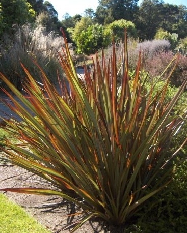 Phormium Thumbelina - a dwarf flax, with a very compact habit. Bronze leaves. 60cm