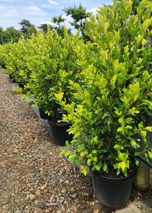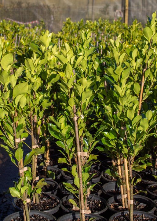 Ficus Tuffi is a compact, dense tree with glossy, mid-green foliage. An alternative to Griselinia littoralis, it creates a fast growing and hardy hedge or for topiary use. Up to 4m tall.