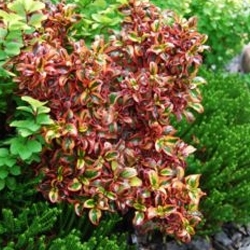 Coprosma Inferno. Set your garden on fire with this outstanding foliage shrub. The rich, deep-orange, red and pink hues of the summer foliage deepen to deep red for the winter. Very striking. Easy to grow in sun or part shade but best protected from harsh frost. Evergreen.