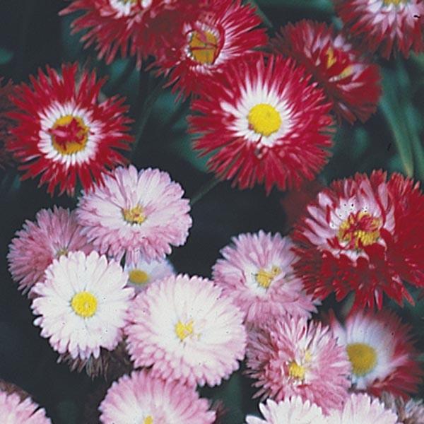 Bellis perennis Bellissima Mix is a compact, long-flowering perennial producing masses of double daisy-like flowers in shades of white, pink, and red. Flowering from late winter through to late spring, this vibrant mix adds cheerful colour to cool-season beds, borders, and containers. Its tidy, low-growing form and repeat flowering habit make it a favourite for seasonal garden displays.