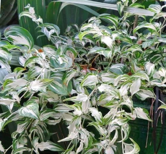 Disporum cantoniense Moonlight has silver-white and green variegated foliage that turns to purple-pink tones during autumn. Produces tiny creamy blossoms in late spring. Likes full sun or part shade, in moist soil.