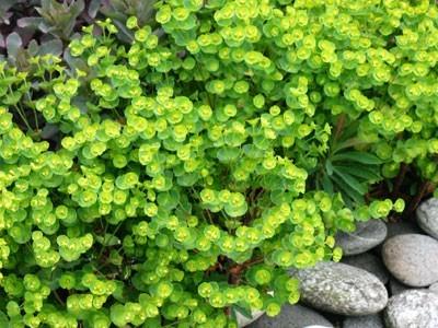 Euphorbia Kea is renowned for its tight, compact habit. In late winter the flower spikes flush pink red before opening to a mass of continuous lime gold blooms throughout spring and summer.