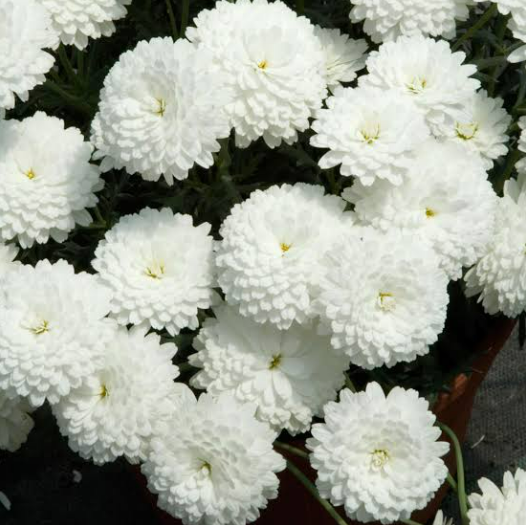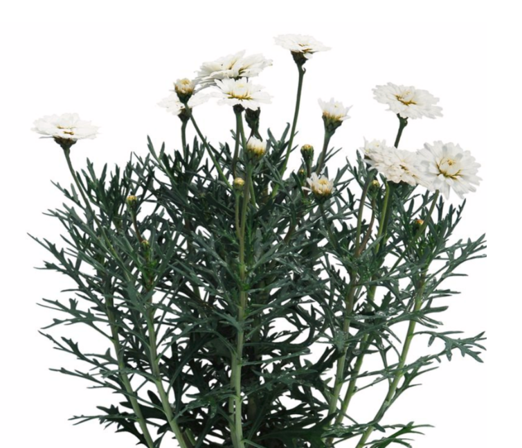 Federation Daisy Summersong White is a compact, evergreen perennial known for its bright white pompom blooms with a soft yellow center. Federation daisies are shrubby, clump-forming and have deeply lobed leaves that emit a strong fragrance when crushed. The plant's free-flowering nature ensures a continuous display of double daisies from late spring until frost, and are a magnet for butterflies.