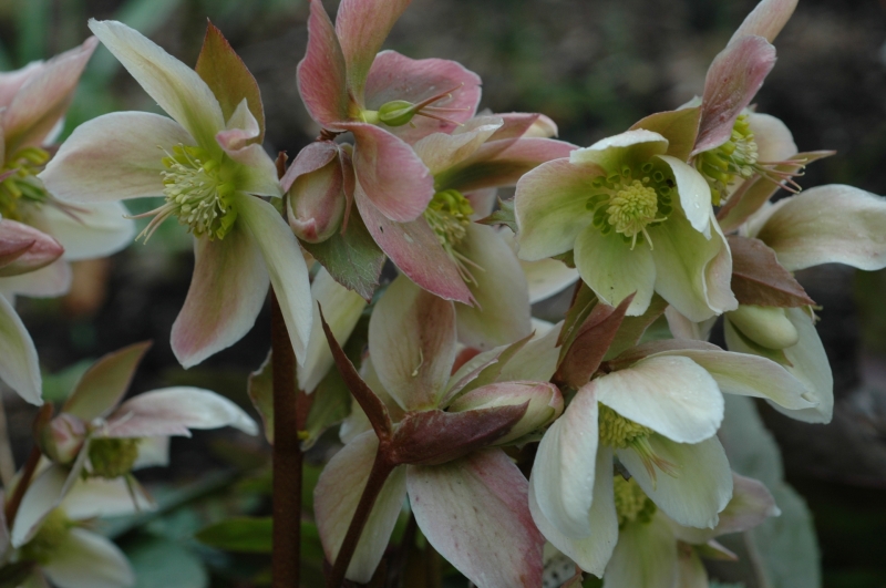 Helleborus Candy Love is a very popular new Hellebore famed for its floriferousness, producing masses cream, green and purple-pink flowers on dark wine coloured stems. Evergreen and quite hardy as long as it remains well-drained and in well-ventilated, though a sheltered spot in the garden.