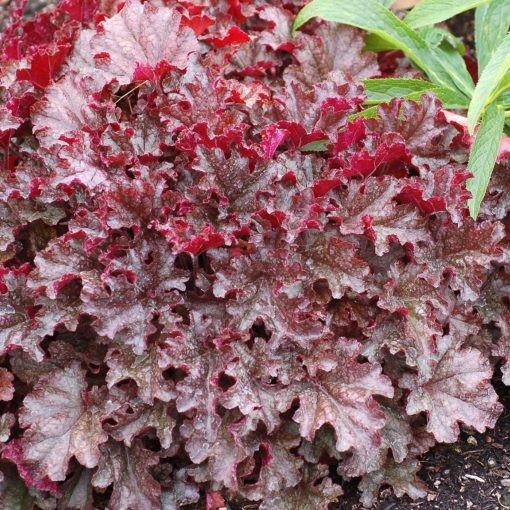 This bold selection forms a sturdy mound of large, leathery, ruffled leaves that are grape-purple-black, extra thick and overlaid with silver. Rapid grower. Excellent in the border, for edging, and especially in tubs and mixed containers.