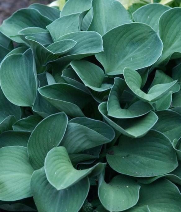 Hosta Blue Mouse Ears - multiple award-winning, small hosta with very round, thick blue leaves forming a nice tight mound. Ideal for pots and edging. Best with some shade and water during hot, dry spells.