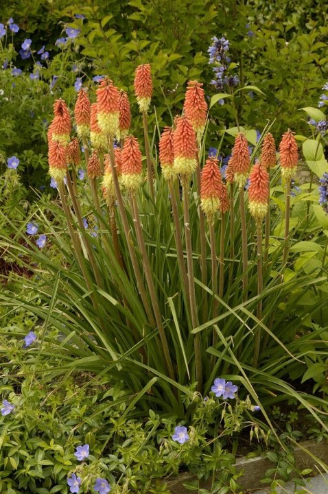 Kniphofia caulescens is a bold, clump-forming perennial known for its striking flower spikes and architectural form. From late summer into autumn, it produces tall, torch-like flowers in shades of coral-red to orange, maturing to yellow at the base. These eye-catching spikes rise above broad, blue-grey strap-like leaves that form a strong, structural clump. Typically reaches 1 to 1.2 metres high when in flower and 60 to 80 cm wide, making it ideal for gravel, prairie, coastal and contemporary garden styles.