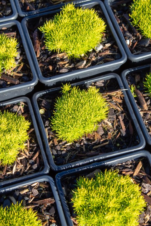 Its evergreen moss-like neon-yellow carpet of foliage is great for filling in between pavers, in rock gardens, or along a path. Light foot traffic is tolerated. During early spring or fall it is easy to propagate by simply tearing the moss into smaller clumps.