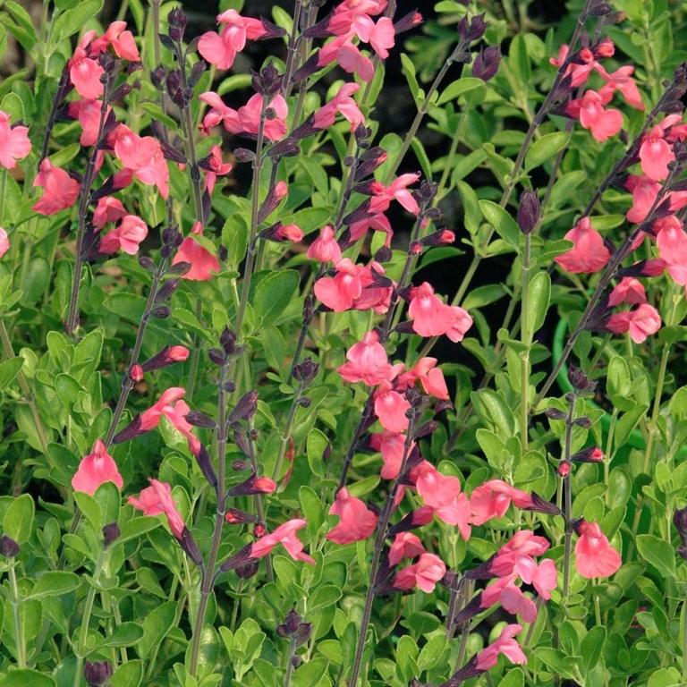 Salvia La Siesta is a compact, perennial plant that is known for its beautiful, apricot-pink flowers and green foliage. It is a member of the mint family and is native to Central and South America. Salvia La Siesta grows best in well-draining soil and prefers full sun or partial shade. It has a spreading habit and reaches a height of around 30 cm, making it a great choice for use in borders or as a groundcover.