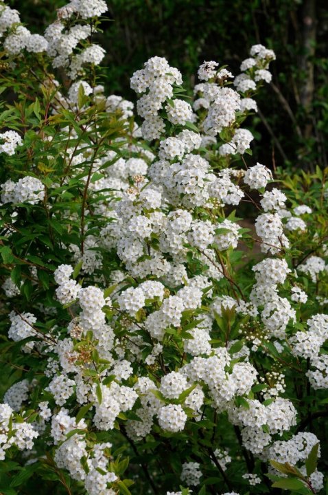 Spiraea cantoniensis is a deciduous shrub admired for its graceful, arching branches and abundant clusters of pure white, double flowers that cover the plant in mid to late Spring. Commonly known as May Bush, it creates a cascading effect when in full flower and provides a soft, romantic look in garden settings.