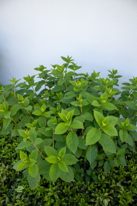 Hydrangeas add height and strong seasonal interest. Pachysandra creates a dense evergreen base layer beneath, helping to suppress weeds and support soil moisture. Together, they give you a clean, layered look that fills space quickly and stays low maintenance.