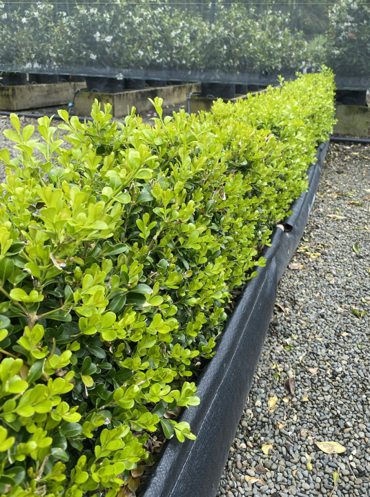 PVR applied for: A superb new boxwood ideal for formal hedging and topiary. Trim back in winter and again in early spring to maintain shape. Can be used in place of other Buxus varieties. Older growth is hardy to the cold, new growth may be affected by unseasonable snow/frost and any burnt tips can be trimmed off. Holds green colouring over winter and has an overall round habit.
