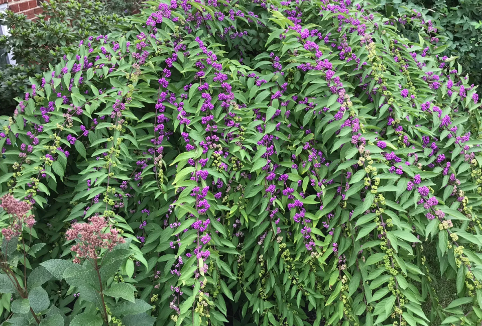 Callicarpa dichotoma, commonly known as Purple Beautyberry, is a deciduous shrub celebrated for its striking clusters of vibrant purple berries that create a spectacular display in autumn. This ornamental plant features gracefully arching branches with fine, lacy foliage that turns to lovely shades of yellow and purple in the fall, providing multi-season interest. The small, delicate pink flowers bloom in summer and are followed by the signature berry clusters that persist into winter, offering a unique aesthetic appeal and food source for birds. Callicarpa dichotoma is a low-maintenance shrub that prefers full sun to partial shade and well-drained soil, making it a versatile choice for garden borders, mass plantings, or as a focal point in the landscape. 60cm to 120cm tall with a weeping effect.