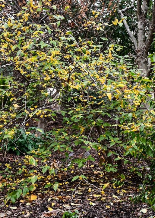 Chimonanthus praecox Luteus, commonly known as Wintersweet, is a medium-sized, deciduous shrub that is valued for its strikingly beautiful and sweetly scented winter flowers. This vigorous plant brings a splash of colour and fragrance to the garden during the late winter months, a time when most plants remain dormant. Its small, bowl-shaped, waxy golden-yellow flowers emerge on bare branches, creating a stunning display that can last until early spring, weather permitting. The bushy, upright, and vase-shaped structure of this flowering shrub, complemented by its glossy, lanceolate, dark green leaves that turn yellow in the fall, makes it one of the most desirable additions to the winter garden.
