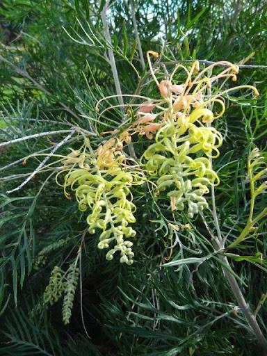 Grevillea Green and Cream is an evergreen, vigorous growing shrub with needle-like leaves, producing lime-green, spider-like flowers from late winter to spring. Frost hardy and suitable for most situations and soil.