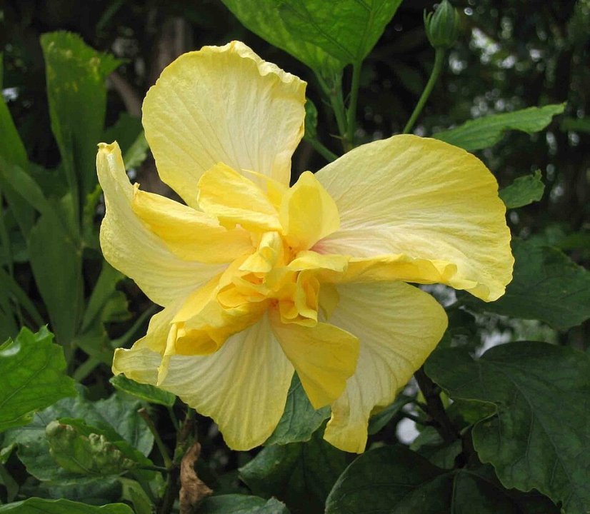 Hibiscus rosa-sinensis Full Moon is an evergreen shrub featuring large, soft yellow flowers with a deep red centre and gently ruffled petals. Flowering from spring through to autumn, it adds a warm, tropical touch to borders, feature plantings, or large pots in sheltered areas.