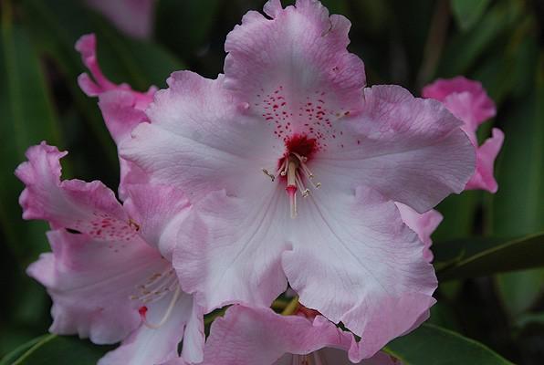Very tall, pastel-pink trusses which cause people to pause in amazement. It is a robust grower with thick deep greenleaves. Few rhododendrons are as breathtaking when in flower. It is superb. Mid season.