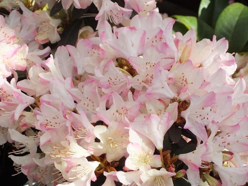 Small clusters of pale pink flowers dappled white completely smother this little dome shaped plant. Foliage is bronze in winter. Will cope with sun and shade.