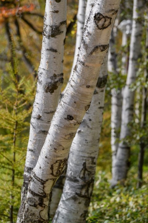 Betula platyphylla var. japonica, also known as Japanese white birch, is a graceful deciduous tree admired for its smooth, chalky-white bark and upright, open branching habit. Its broad, ovate green leaves provide a lush canopy that shifts to golden yellow in Autumn, creating strong seasonal contrast.