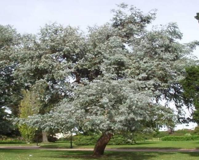 Eucalyptus cinerea (Argyle Apple or Silver Dollar Gum) is an ornamental, shelter tree. This evergreen has a moderate growth rate with rounded, silver foliage, white flowers bloom in clusters. Thrives in full sun in moist, well-drained soils. Up to 15m tall. Low maintenance.