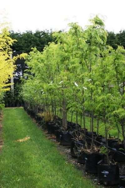 Gleditsia Skyline. This variety has a very symmetrical form, developing a broadly conical crown. The dark-green, finely-divided foliage turns a golden-yellow shade in autumn. Gleditsia Skyline is an impressive shade or specimen tree for a larger garden or similar situation. Deciduous, grows to 6 x 5m.