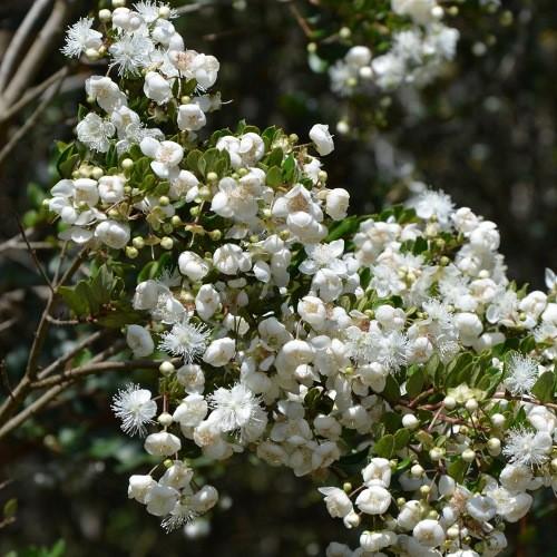 Myrtus Luma Standard is a 80cm-1m tall standard. This plant has lovely bowl-shaped, small white flowers in full profusion. The foliage is a deep green that is oval shaped.